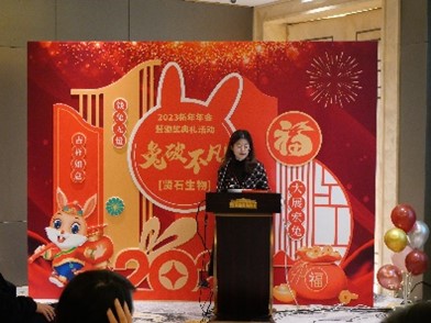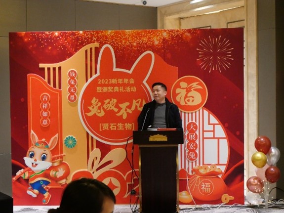賢石生物總經理俞小華博士對全體員工致以新春祝福,感謝每一位員工的辛勤工作與付出,并總結了過去一年的發展,公布公司2023年的發展規劃,鼓勵員工勇毅前行。